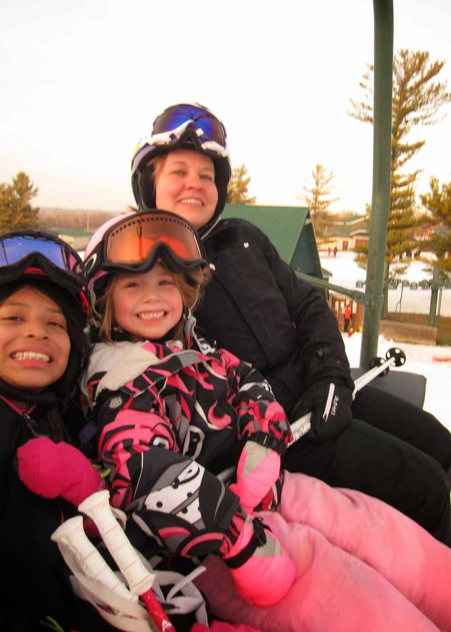 Met Olivia at the Adventure Park building. Her instructor shared just how good she did. Said she needed to work on looking ahead rather than at her skis. Otherwise, he said, she did just fine. Olivia asking immediately if we could go do the big hill. No. Let's go grab some lunch and get warm. She was in favor or that, too, especially after we promised to make good on the big hill thing after. :)